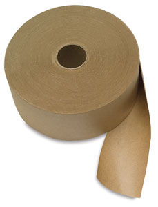 Traditional brown packaging tape; 60 lb weight; requires moistening; provides good seal and holding power.